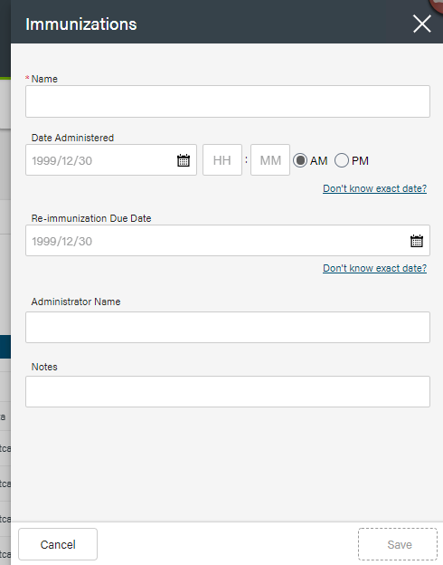 to add an immunization. You can make note of the date you had the immunization, when you need another dose (called the “re-immunization due date”), who gave the immunization (called the Administrator), and any other important notes.